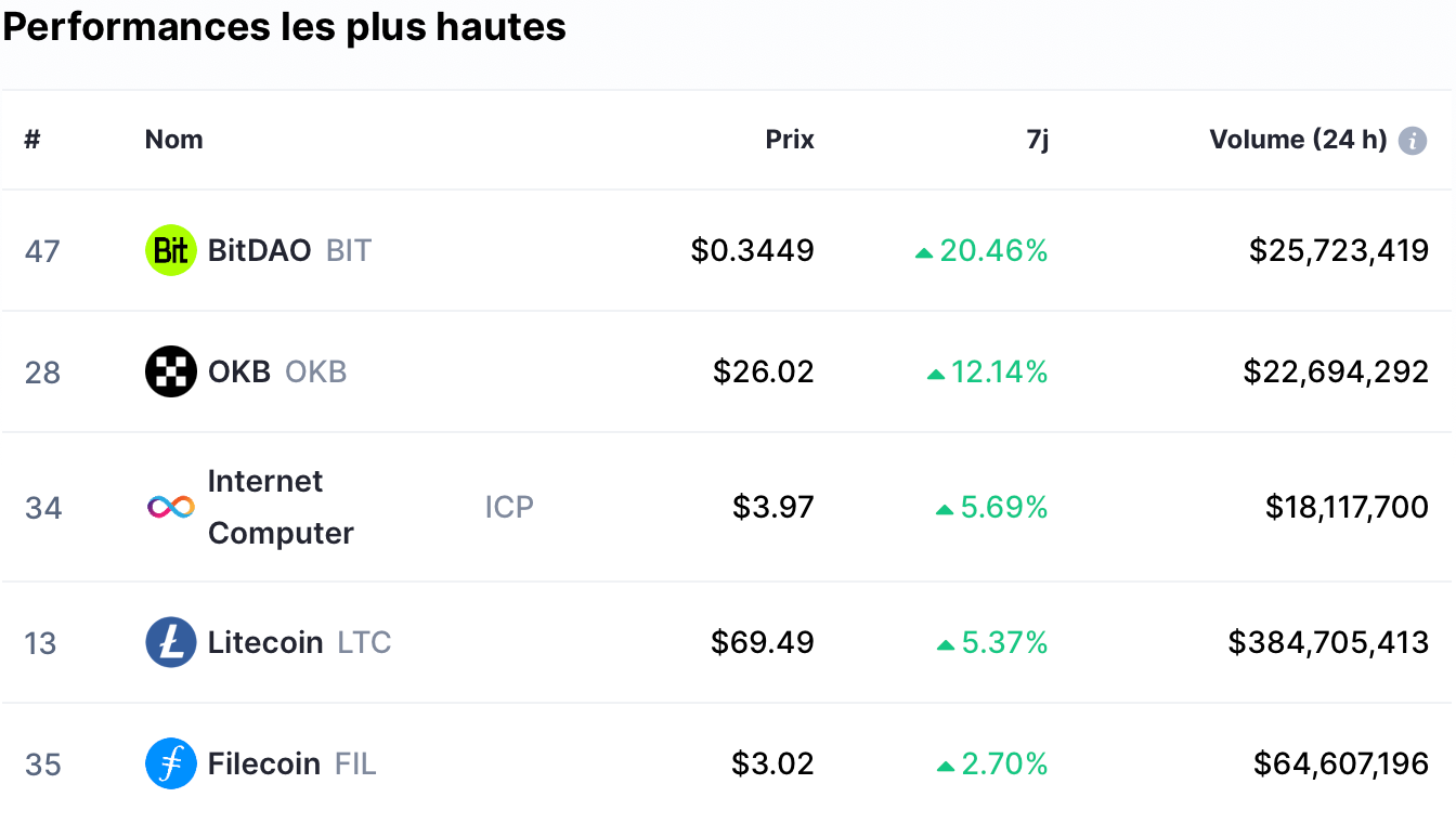 Évolution sur 7 jours : +0,58%